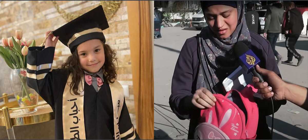On the internet, you will find a photograph of Hind Rajab graduating from kindergarten. Smiling, she tips her miniature mortar board hat, looking proudly at the camera.