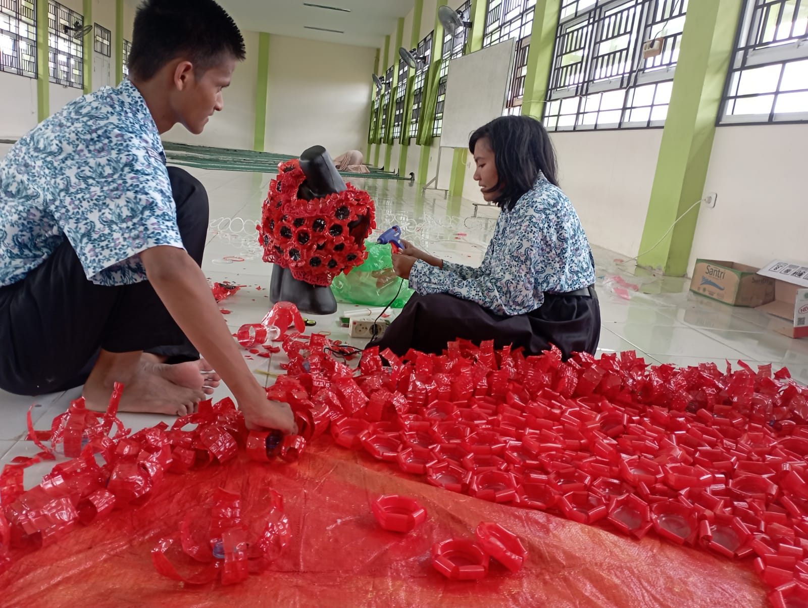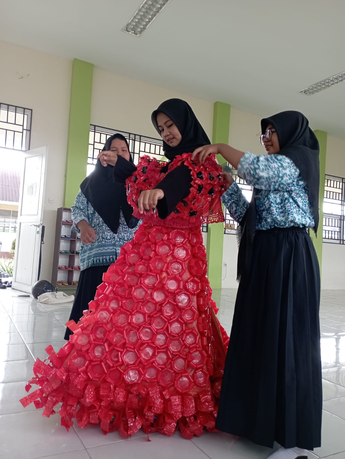 Using EAA’s youth-led climate action arm, the ROTA Programme, in collaboration with Aflatoun International, thousands of young people from Indonesia stepped up as change agents, cleaning up plastic waste in their communities, creatively repurposing it into various products, such as handbags and lamps. The highlight of their efforts was a striking red dress made entirely from recycled plastic, worn as a powerful fashion statement.